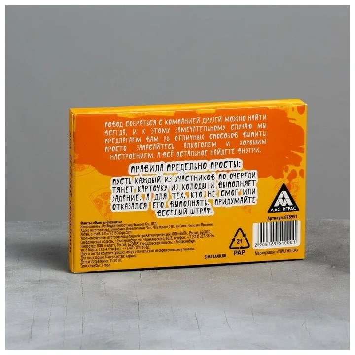 Купить игра для компании "фанты буханты" 20 карт от 100 руб. с доставкой до пункта выдачи в Олонце. Интернет магазин ДекаМаркет. Оплата при получении.